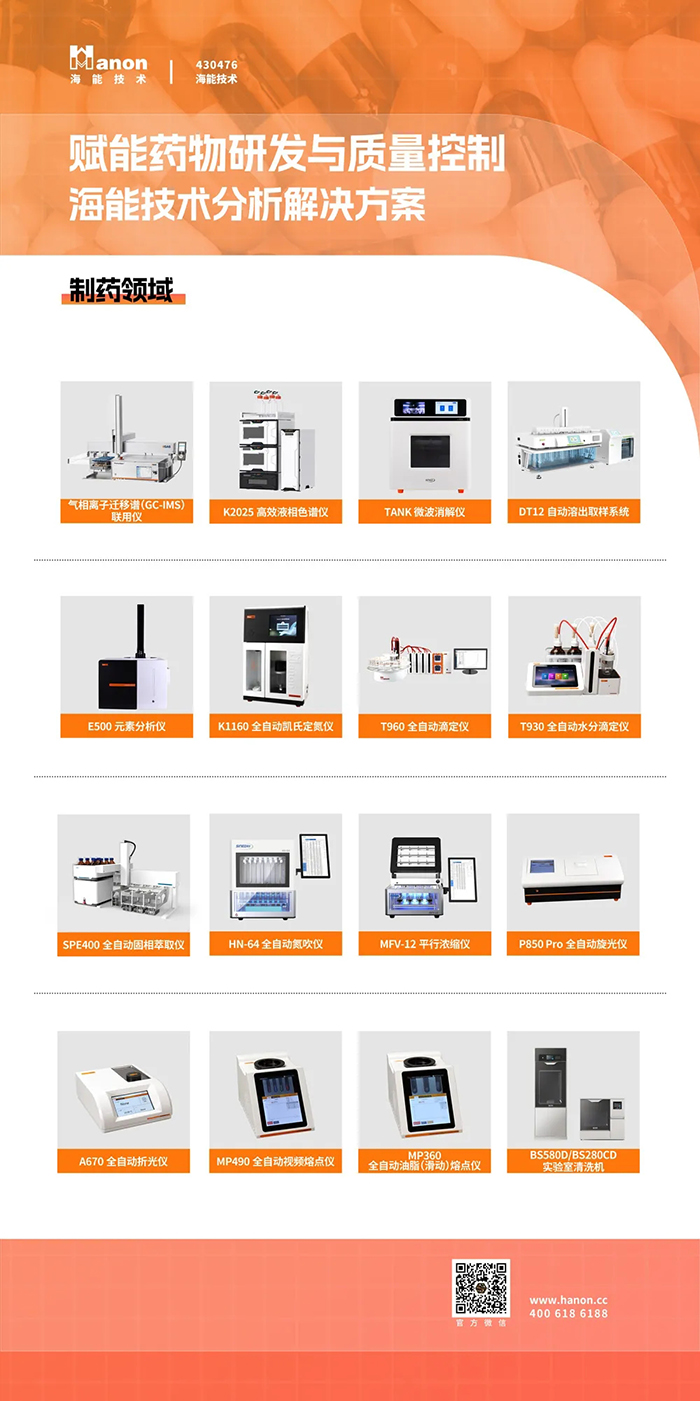 制藥是海能技術(shù)重要的產(chǎn)品應(yīng)用領(lǐng)域,海能、新儀、悟空、G.A.S.、海森、白小白為用戶提供可靠的儀器和方法支持。