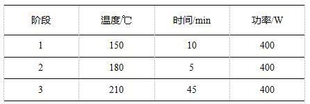 精確稱取半導體薄膜材料50mg(精確至0.1mg),緩慢滴加8mL硝酸(劇烈反應,釋放氣體),靜置10min左右,待無明顯反應后,補加2mL氫氟酸,組裝消解罐,按照如下設置參數進行實驗: