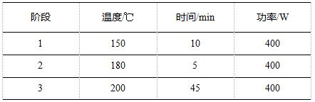 稱取三元材料0.2g(精確至0.1mg),加入2mL硝酸和6mL鹽酸,靜置10min左右,待無明顯反應(yīng)后,組裝消解罐,按照如下設(shè)置參數(shù)進(jìn)行實驗: