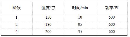 使用硝酸、鹽酸和氫氟酸作為實(shí)驗(yàn)的消解試劑,稱(chēng)取不銹鋼樣品0.1g(精確至0.1mg)于消解罐中,加入4.5mL鹽酸、1.5mL硝酸、2mL氫氟酸,靜置5min左右,組裝消解罐,按照如下設(shè)置參數(shù)進(jìn)行實(shí)驗(yàn):