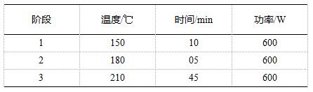 使用硝酸、過氧化氫作為實驗的消解試劑,稱取木質(zhì)素磺酸鈉樣品0.1g(精確至0.1mg)于消解罐中,加入8mL硝酸、1mL過氧化氫,靜置5min左右,組裝消解罐,按照如下設(shè)置參數(shù)進行實驗: