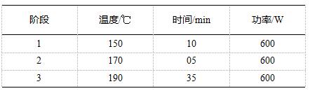 使用硝酸和過(guò)氧化氫作為實(shí)驗(yàn)的消解試劑,稱取大豆分離蛋白樣品0.2g(精確至0.1mg)于消解罐中,加入8mL硝酸、1mL過(guò)氧化氫,組裝消解罐,按照如下設(shè)置參數(shù)進(jìn)行實(shí)驗(yàn):