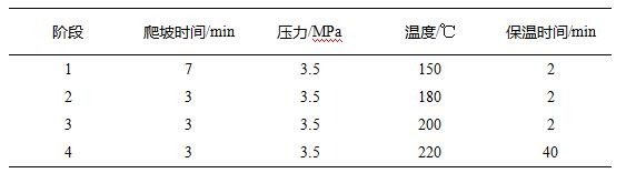 使用硝酸、氫氟酸作為實(shí)驗(yàn)的消解試劑,稱取白石墨樣品0.1g(精確至0.1mg)于消解罐中,加入5mL硝酸、5mL氫氟酸,靜置5min左右,組裝消解罐,按照如下設(shè)置參數(shù)進(jìn)行實(shí)驗(yàn):