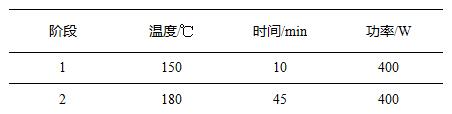 稱取礦物油樣品0.2g(精確至0.1mg)置于消解罐底部,加入10mL硝酸,將消解罐放置在趕酸器上120℃加熱30min左右,待黃煙冒盡后取下冷卻,組裝消解罐,按照如下設(shè)置參數(shù)進(jìn)行實(shí)驗(yàn):