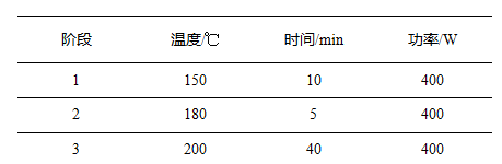 稱(chēng)取石英砂樣品約0.2g(精確至0.1mg),加入5mL硝酸,緩慢加入5mL氫氟酸,靜置10min左右,待無(wú)明顯反應(yīng)后,組裝消解罐,按照如下設(shè)置參數(shù)進(jìn)行實(shí)驗(yàn):