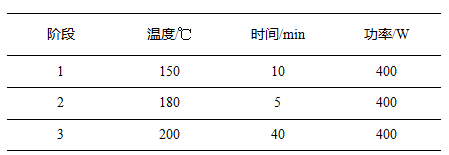 稱取草酸二聚酸樣品約0.1g(精確至0.1mg),加入10mL硝酸,靜置15min左右,待無明顯反應(yīng)后,組裝消解罐,按照如下設(shè)置參數(shù)進行實驗: