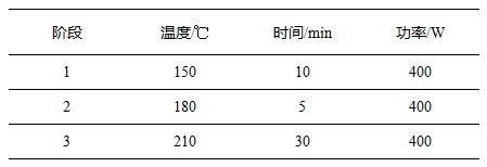 稱取奧美沙坦酯氫氯噻嗪片樣品一片,質(zhì)量約0.22g(精確至0.1mg),加入5mL硝酸、2mL鹽酸、1mL氫氟酸和1mL過氧化氫,靜置15min左右,待無明顯反應(yīng)后,組裝消解罐,按照如下設(shè)置參數(shù)進行實驗:
