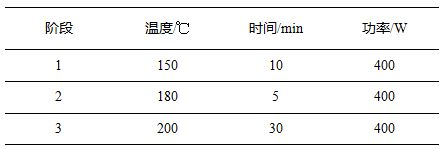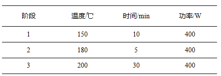 稱取釹鐵硼磁體樣品約0.1g(精確至0.1mg),加入6mL硝酸和2mL鹽酸,靜置15min左右,待無(wú)明顯反應(yīng)后,組裝消解罐,按照如下設(shè)置參數(shù)進(jìn)行實(shí)驗(yàn):